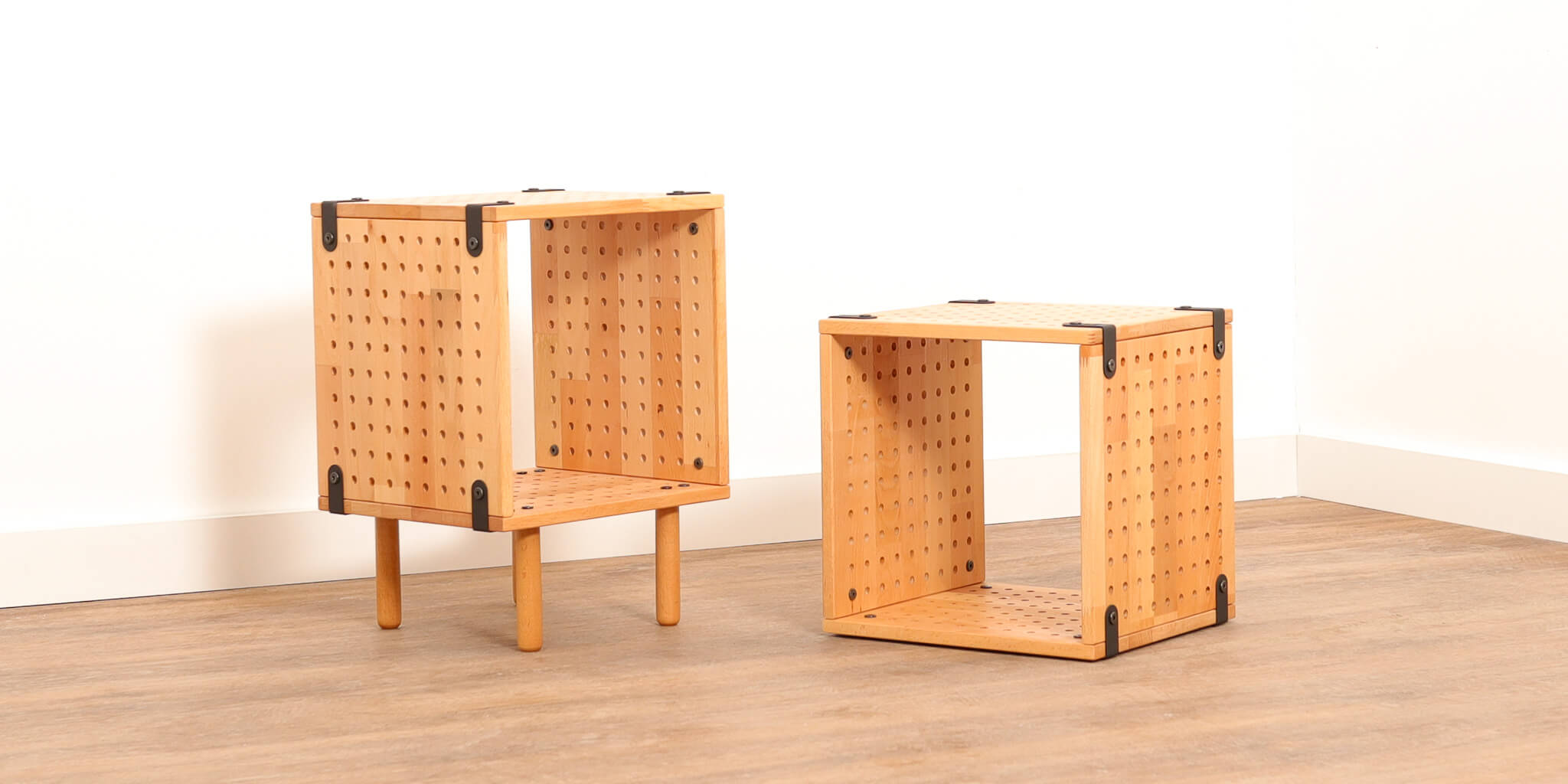 Modular cubes are produced in two colors. Natural and walnut color. Special waterproof, double layer varnished.